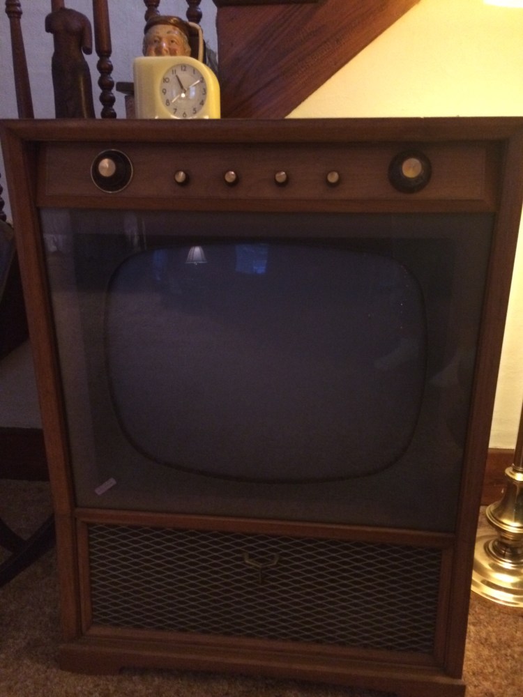He donated this cool old TV set and clock to the living room, which gladly accepted:
