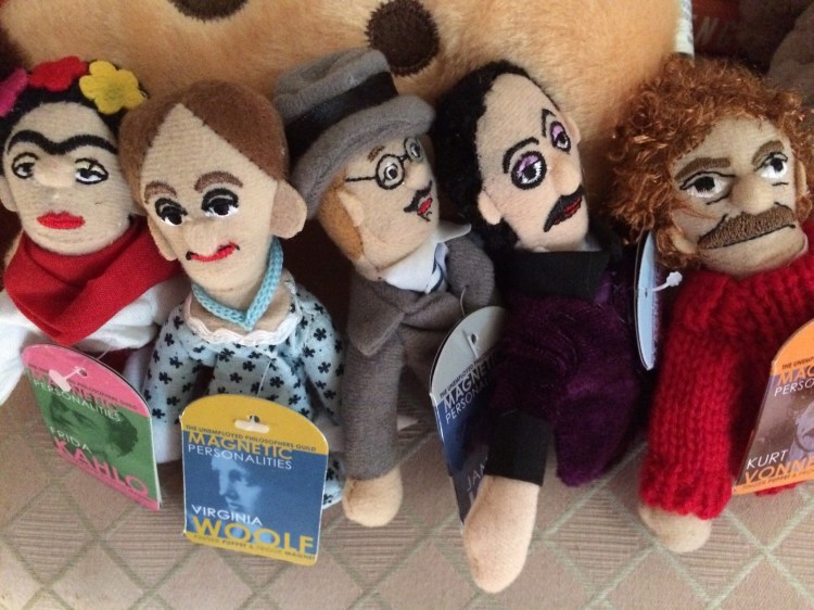 So, unless you don’t know me at all you know I’m obsessed with Virginia Woolf. Look at what Barry bought me for my birthday! I just BAWLED when he gave Woolf and company to me. And just check out Vonnegut! That hair!