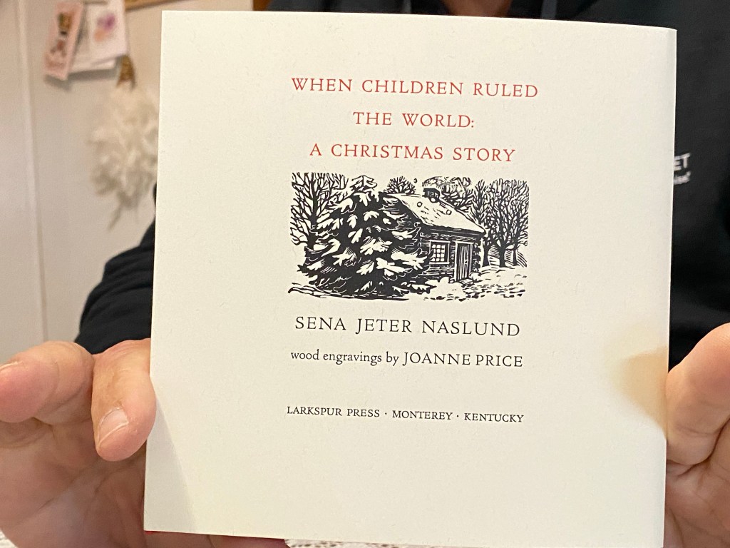 This beautiful children’s book, When Children Ruled the World, by Sena Jeter Naslund, is a gem. From its heartwarming story featuring little Una to its exquisite wood engravings by Joanne Price, this is an instant classic. (Una is a name familiar to Sena’s readers. If you know, you know. If you don’t, go acquaint yourself with the parallel.)