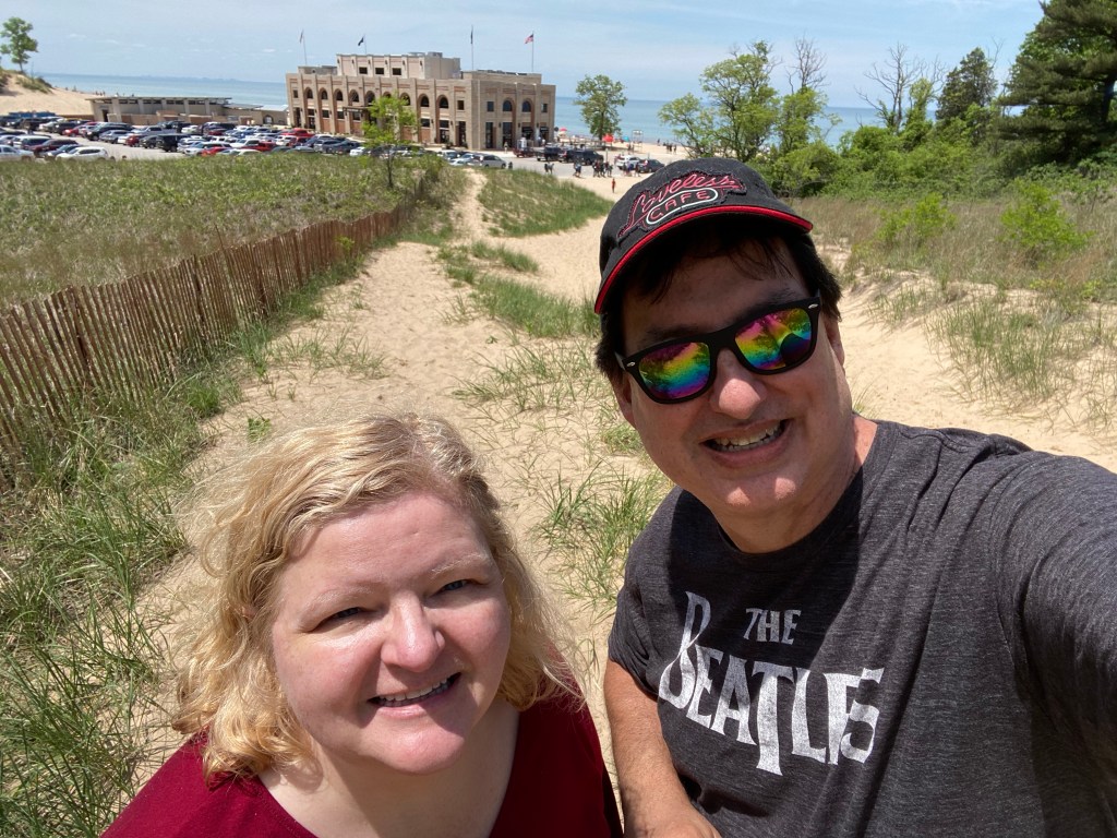 The next morning, we returned to the beach and pretty much repeated the day before, though we didn’t climb Mt. Tom as we had the previous day — it’s steeper than the photo below makes it look. (It was taxing but so rewarding! And now I want to complete the three-dune challenge. I don’t think the body’s up to that just now, but it’s a goal.)