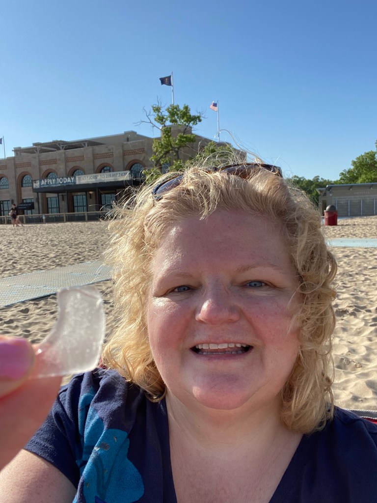 Though I found a couple of tiny pieces that morning, my true treasure was the peace that the water brings, the stretching in the sun, the people watching, and knowing that my hubby awaited me when I returned to our chairs.