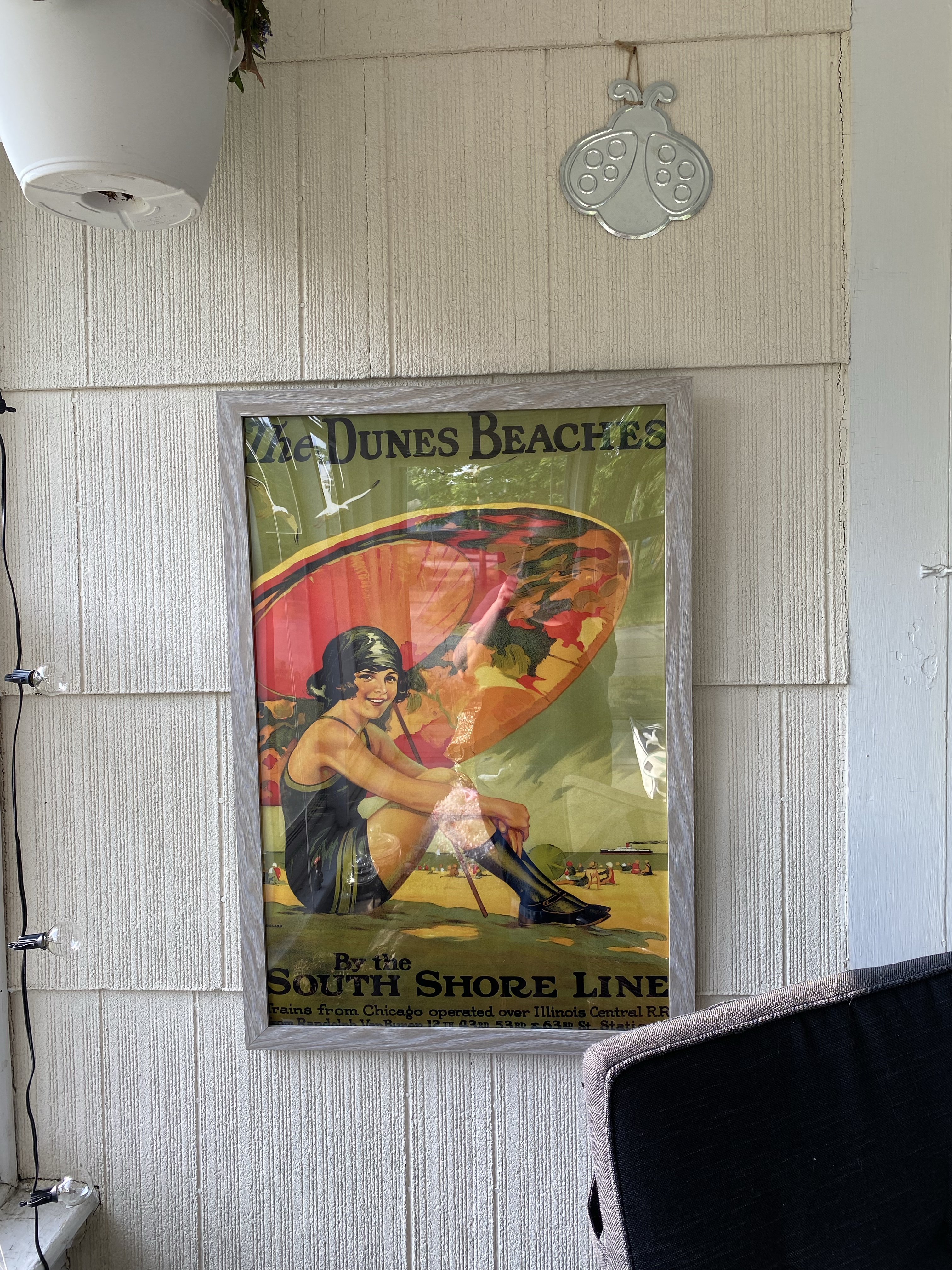 While the world was swirling around me, I found an unexpected sanctuary right on my porch. It’s as if a sprinkle of coffeehouse magic landed on it. With a touch of creativity and a sprinkle of personal flair, our porch has become a haven of inspiration. The dunes poster we bought and framed had me clapping for joy – we’ve been talking about getting one for some time. It’s amazing how crafting a cozy nook can ease the pangs of nostalgia left behind by a beloved coffeehouse. (But wait…WAIT! NEWS!)
