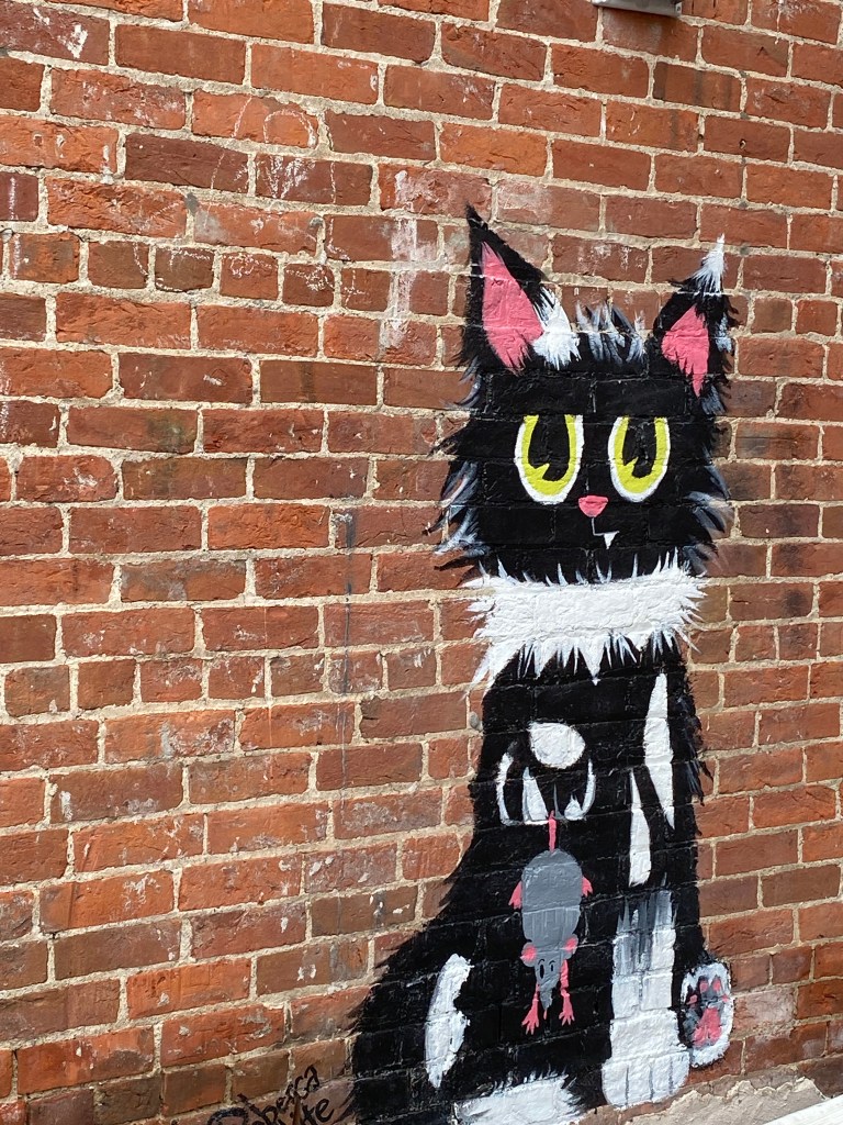 WR didn’t find others’ poetry last night, but she did find some pretty cool murals walking around Huntington. Not the murals. Her.