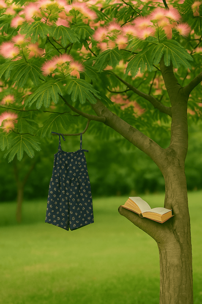 I know The Mimosa that held me is gone now. But that moment, the little girl, the book, the bloom brushing her cheek as she read, that stays. The leaves that folded in at night like the tree was tucking itself to sleep. The feeling that the tree was mine.