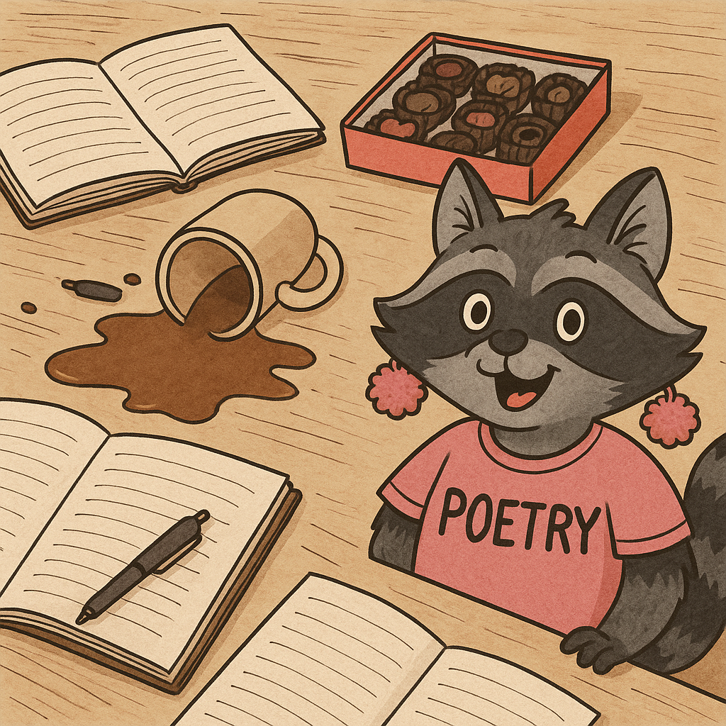 Word Raccoon is gleeful. She’s tearing through my scenes like a critter who’s just been handed the keys to the pantry. No more hiding behind polite third-person distance. No more trying to impress the imaginary Council of Serious Novelists. This is messier, wilder, and, for the first time in too long, fun.