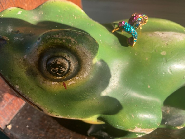 I let Word Raccoon buy a hummingbird pin at the thrift shop yesterday to commemorate our outing, though she didn’t earn it.