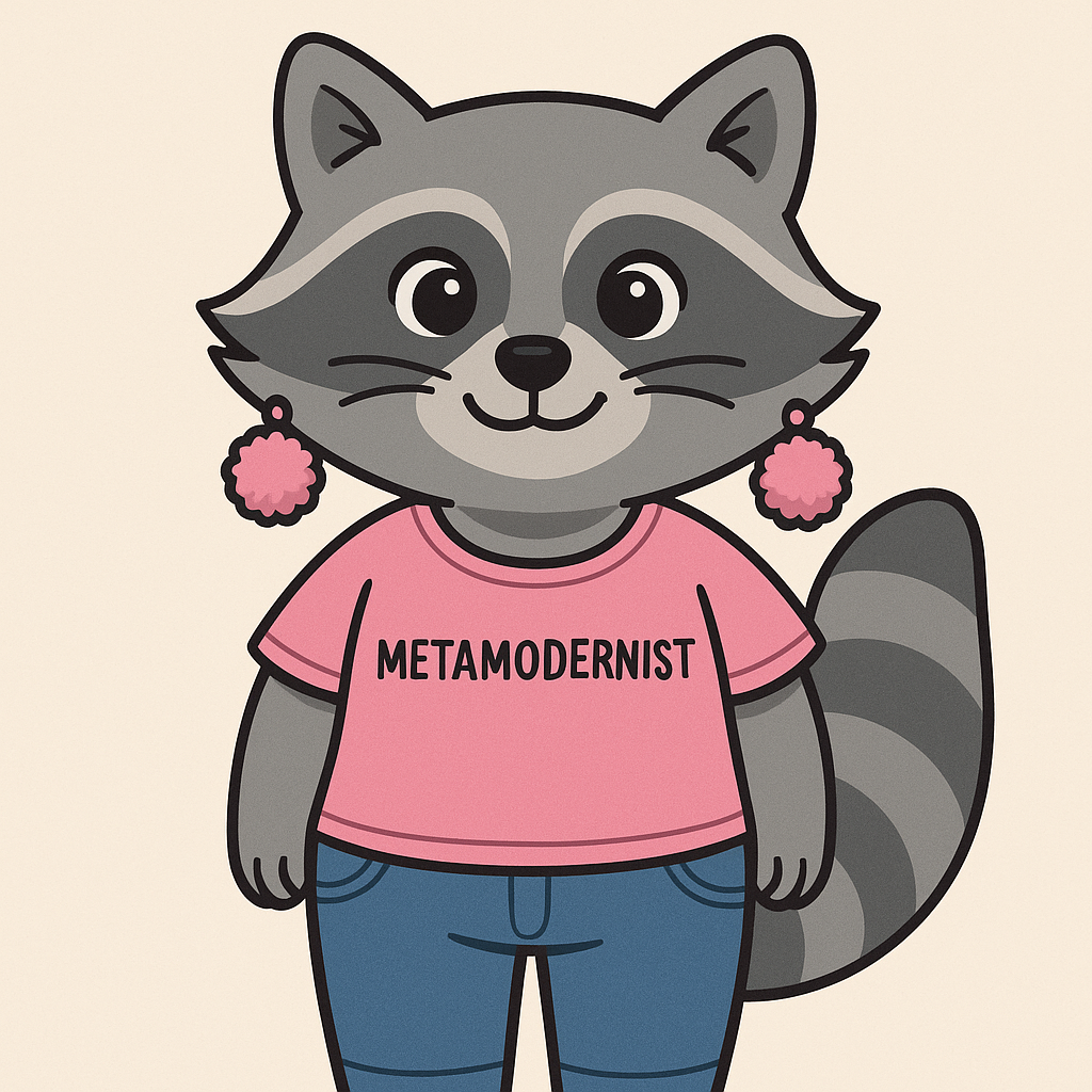 Maybe I am a metamodernist with a raccoon for a sidekick? A hungry, demanding, funny, loving and lovable (most days) Word Raccoon. And right now, she’s reminding me that we skipped lunch.