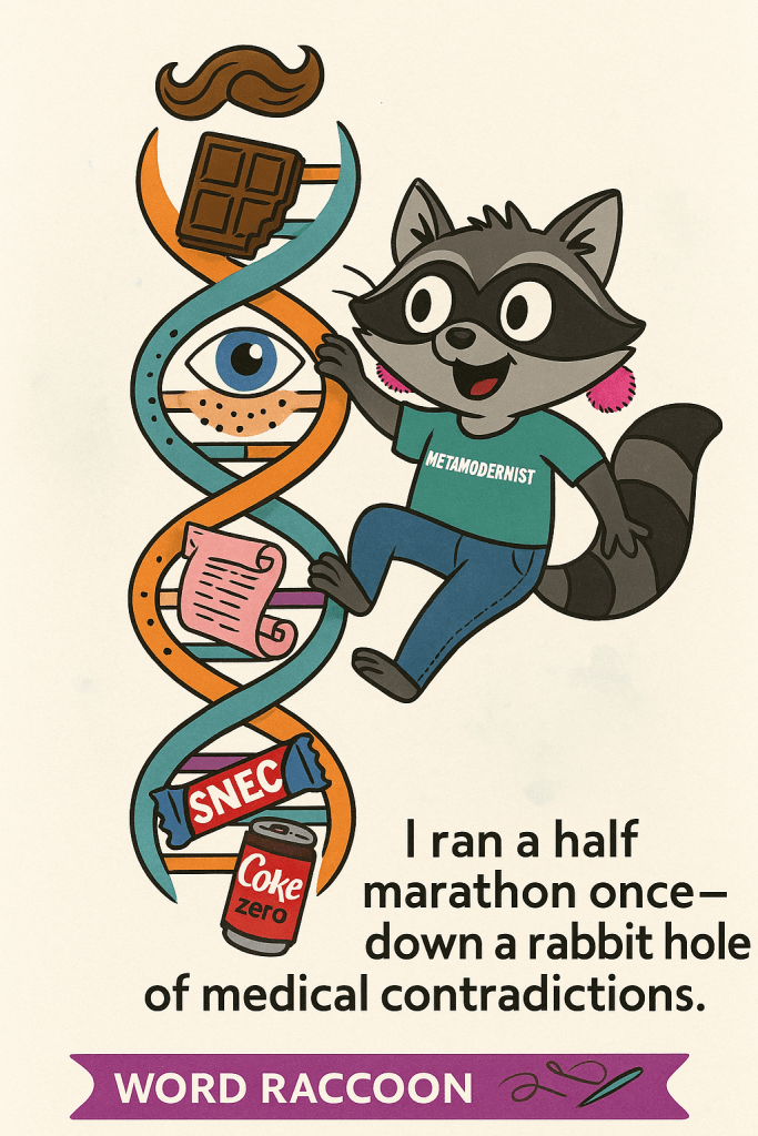 So, I guess Word Raccoon and I are mostly healthy, moderately magical, and just in part genetically misunderstood. Word Raccoon wants to frame the results while eating a Snickers bar and drinking a Coke Zero. (Except Snickers are not dairy free. Dang it.)