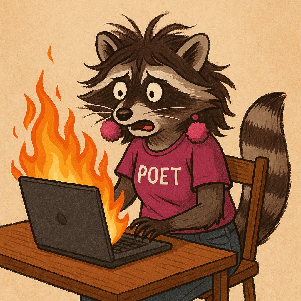 Word Raccoon had plans this morning. Big, brave, ambitious plans. We were gonna wake up, pour a modest amount of Coke Zero (ha), and get that last polish done on a chapbook that’s just about ready to be yeeted into the literary void.