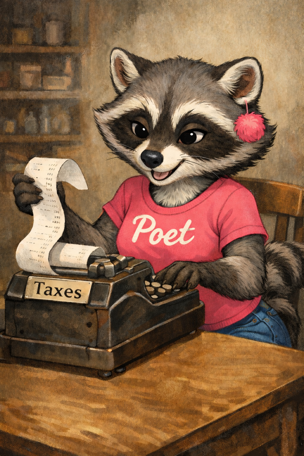 Word Raccoon and I are doing taxes. Writerly taxes.
