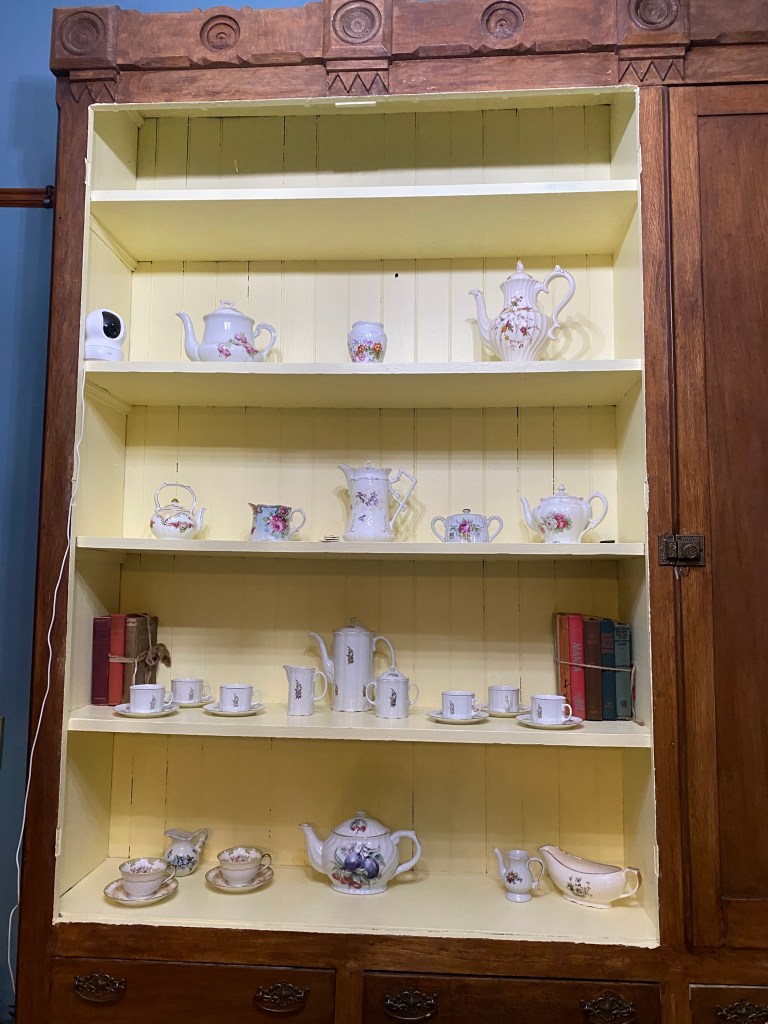 Word Raccoon is greeting people at her old, newly reopened writing hangout today as if she owns the place. I let her take a photo of the tea display, go around and say hello, admire the photos of new nieces and nephews, then made her settle down to the words.