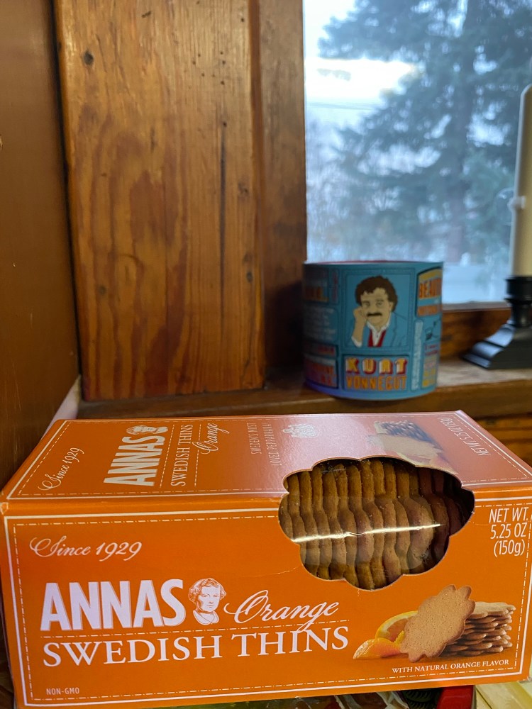 Not having any Coke Zero (long story), I dug out the Keurig and inserted a K-Cup. (Thanks, Zack!) Coffee accomplished. But I did spot some yummy looking cookies while putting away the groceries that I can imagine sampling with a cup of tea later. (Do you think that Kurt Vonnegut mug is auditioning to hold tea today? Perhaps.)