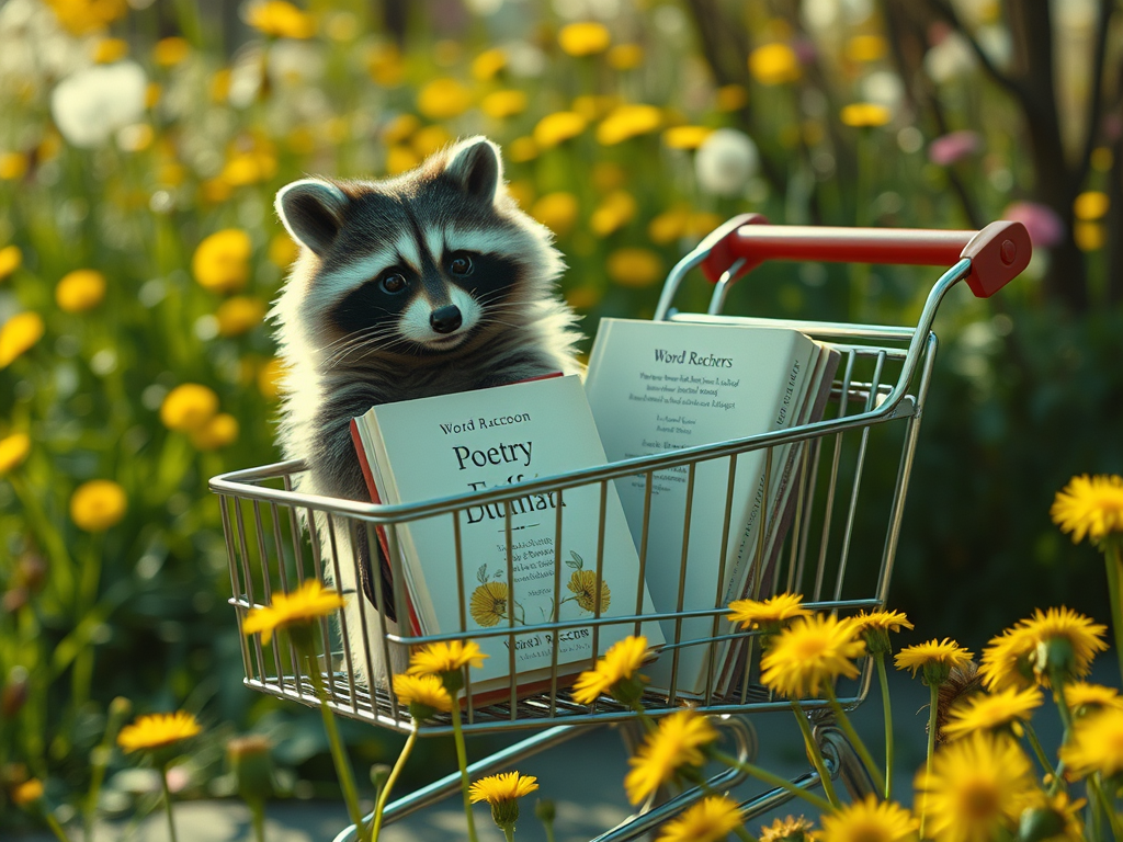 Word Raccoon, of course, has already grabbed a basket. She’s heading out into the yard now, though I’m pretty sure it’s too early for dandelion greens, WR.
