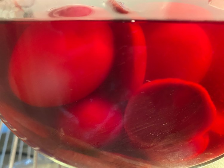 If you’re Drema, you throw the beets out when the eggs are pickled. Not that you have to.