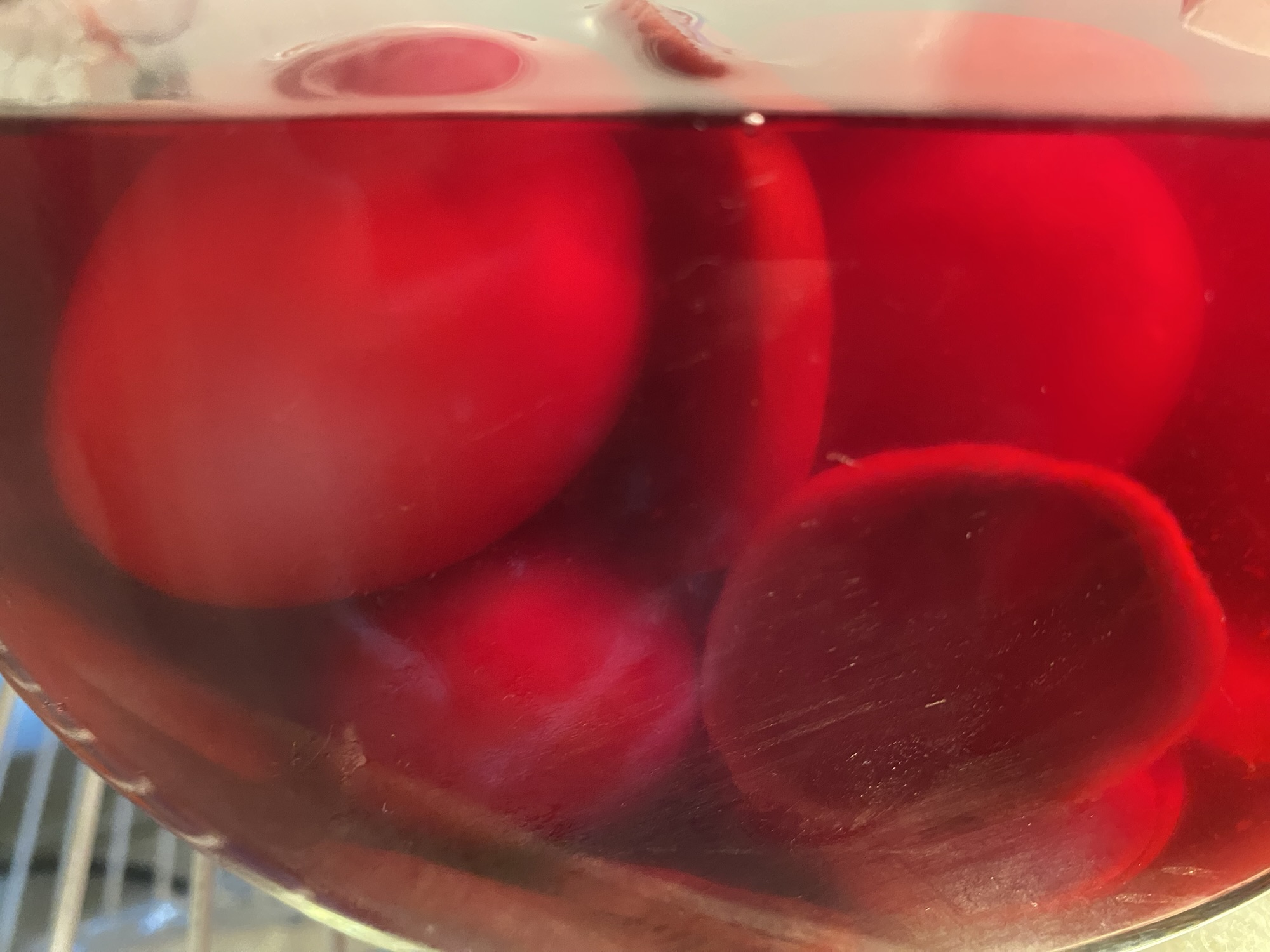 If you’re Drema, you throw the beets out when the eggs are pickled. Not that you have to.