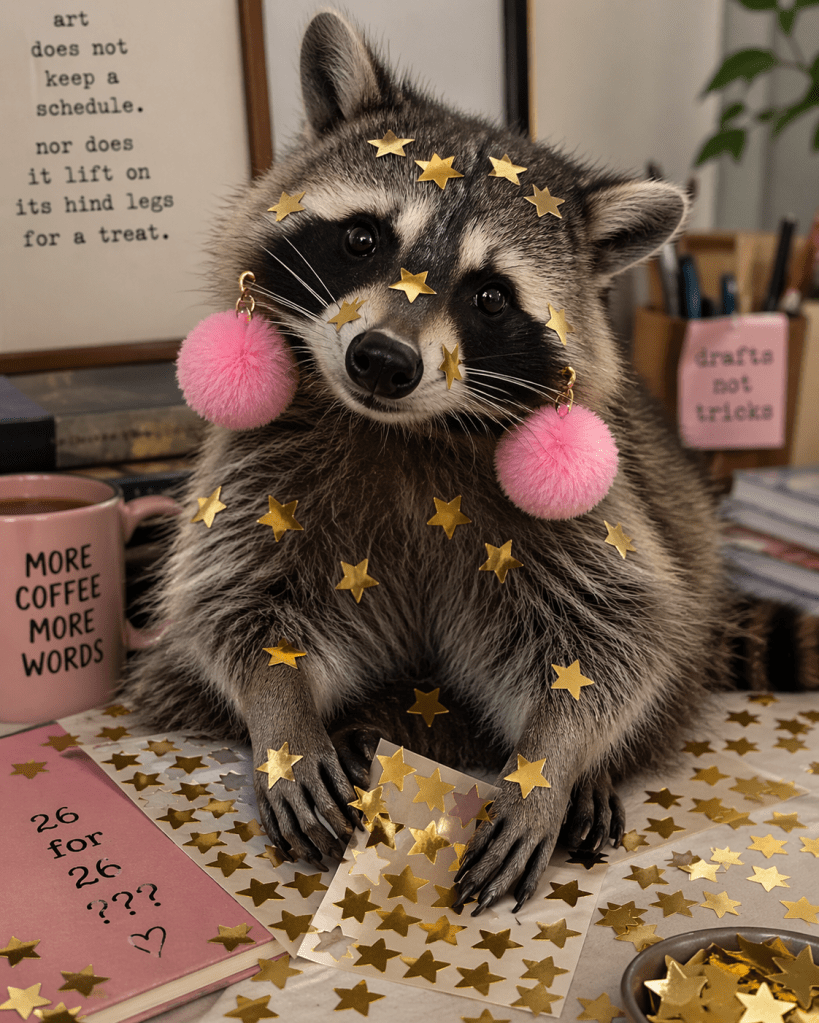 She wrote a decent draft. But honestly, she’d like to feel inspired. She reminded me that asking her to write a poem a day (or submit, or revise) is a lot. Like, remember that 26 for 26 list we created for 2026? We literally do not know where it is right now.